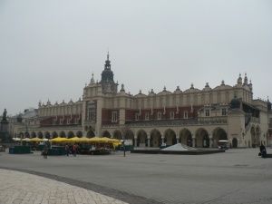 Сразу за Марьяцким костелом расположена Рыночная площадь Кракова, которая является самой большой в Европе. Здесь располагается предрождественская ярмарка и украшается главная елка Кракова. Посреди Рыночной площади находятся так называемые Суконные ряды (Сукенницы). Они выполнены в ренессансном стиле. Как и раньше, внутри Сукенниц находятся торговые ряды (по большей части сувенирные лавки), а на верхнем этаже – галерея польского искусства 19 века.