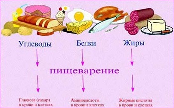 Сложные органические углеводы, поступающие в организм с пищей, распадаются в желудочно-кишечном тракте до моносахаридов - самой простой формы сахара. Конечным продуктом распада моносахаридов является глюкоза, которая, как правило, расходуется на производство энергии очень быстро, поскольку кровь тут же доставляет её до клеток всего организма, где и происходит окисление глюкозы и получение энергии. Правда, в клетку глюкоза сама попасть не может. Преодолеть клеточную мембрану ей помогает инсулин - гормон поджелудочной железы. При достаточном количестве кислорода в клетках один грамм углеводов подарит организму четыре килокалории энергии. Если кислорода в клетках мало, глюкоза не окисляется, а расщепляется, образуя очень токсичную молочную кислоту.