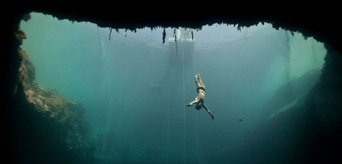 - в подводную пещеру Dean's Blue Hall (глубина 205 м) у одного из Багамских островов - Лонг-Айленд;